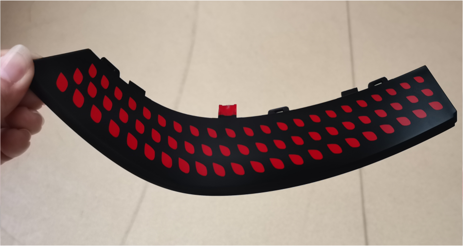 效果:當底層有LED燈源點亮時,光線就能精準地從被激光雕刻出的圖案中透出,形成均勻、清晰、高對比度的透光標志和文字,視覺效果豪華且科技感十足。