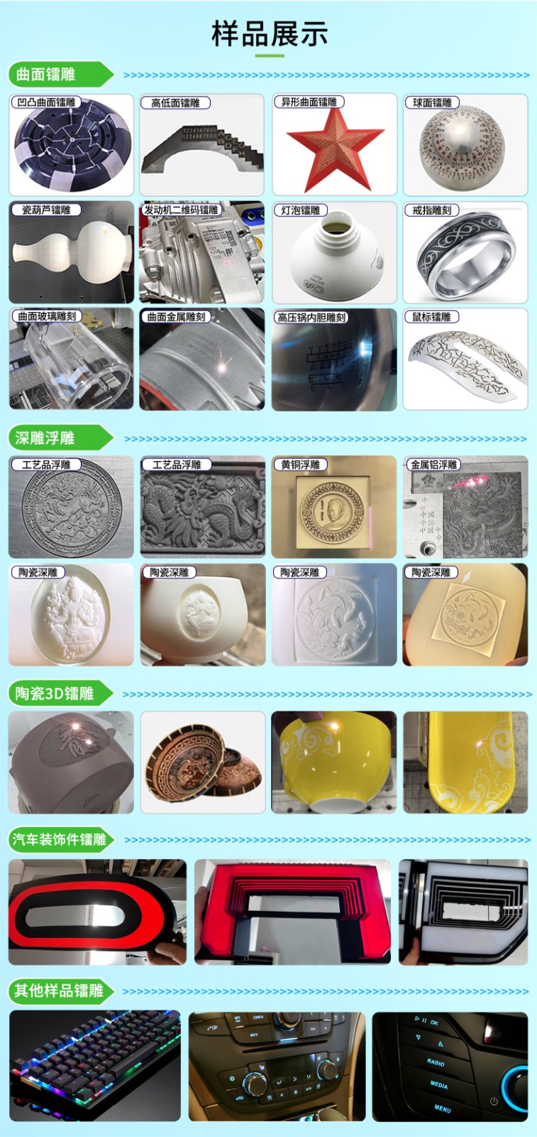 曲面、斜面、臺階面、錐面、球面3D鐳雕