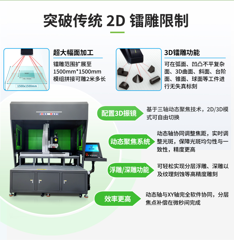 三維大曲面復雜工件一次鐳雕成型,無拼接、無鋸齒、無燒焦、無噪點;